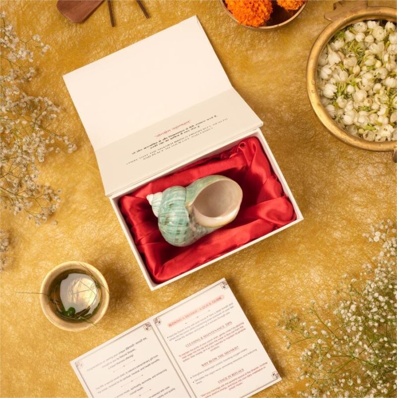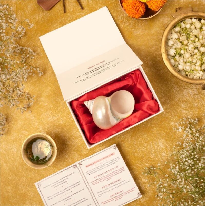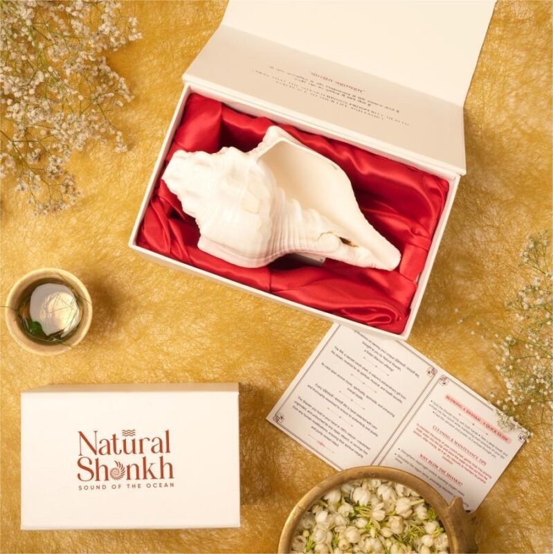 Blowing the Shankh with a loud sound makes your mind empty of all negative thoughts, hence it helps to go into a meditative state of mind.
